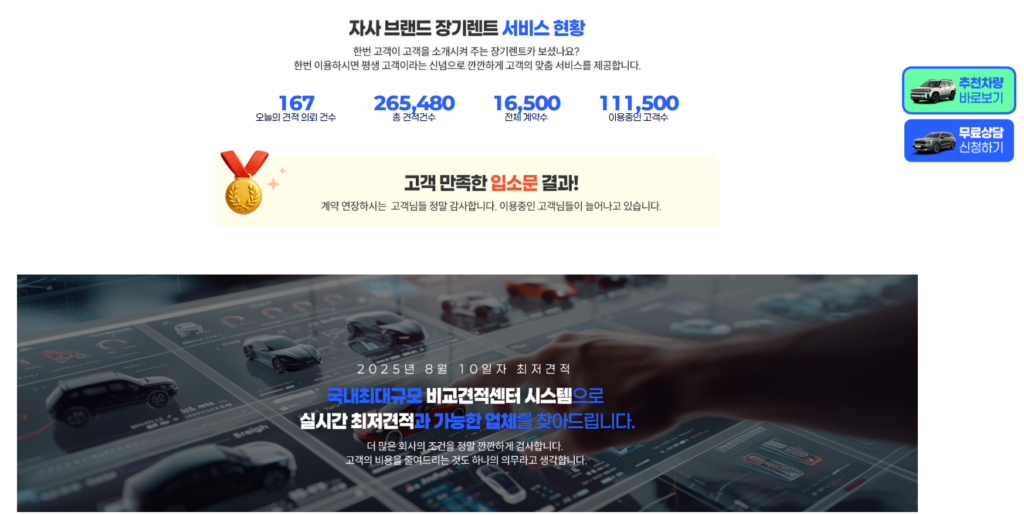 으로 신뢰할 수 있는 장기렌트 파트너를 지향합니다.