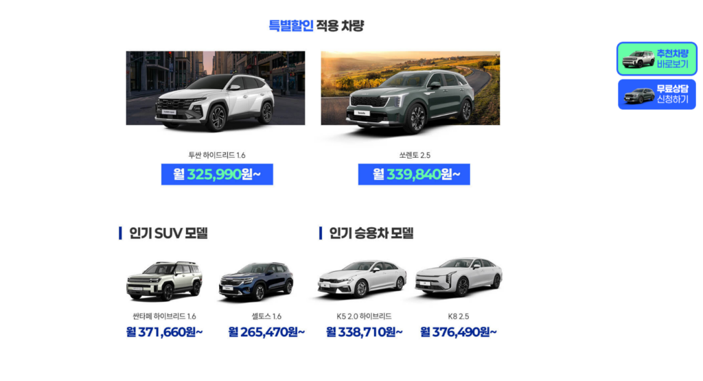 🚘 인기 차종 장기렌트 상담 가능
