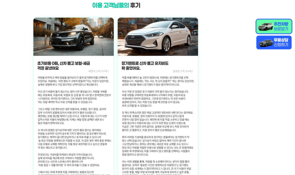 네이버에서 신차 장기렌트, 장기렌트 최저가, 신차 장기렌트 무료 상담을 검색하시는 분들이 점점 늘고 있습니다. 그만큼 정보도 많아졌지만, 정확하지 않은 정보와 과장 광고도 많아진 게 사실입니다.