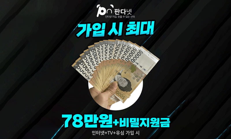 판다넷 인터넷 티비 가입으로 78만원 + 비밀지원금을 받고 있습니다.