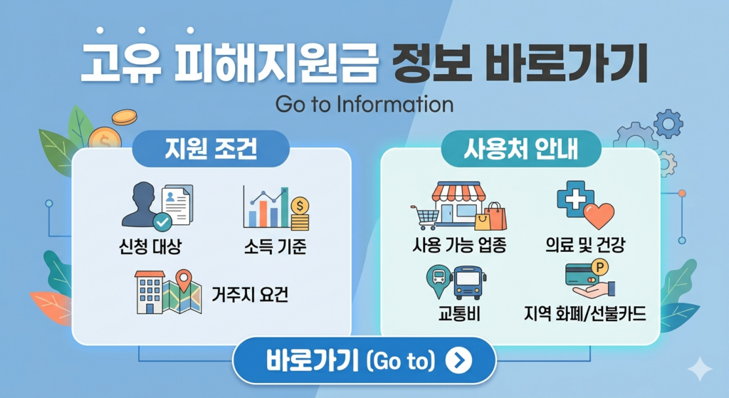 고유 피해지원금 조건 및 사용처 조회 바로가기